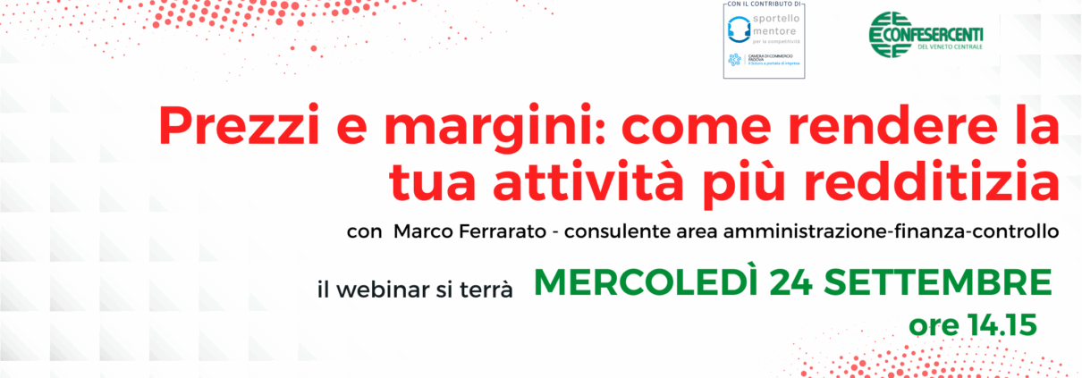 dalle 9.00 alle 12.30 – dalle 14.00 alle 17.30